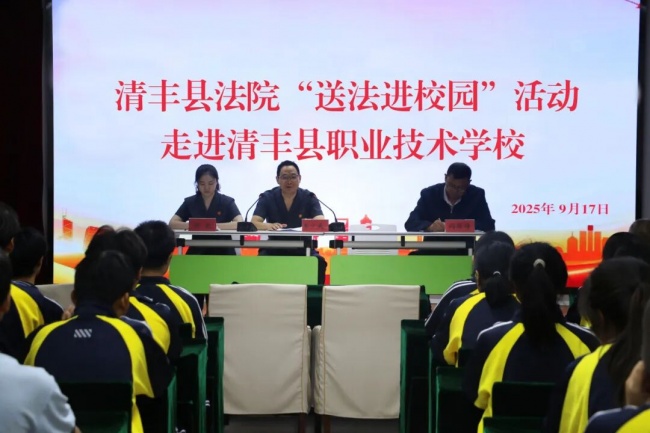 为持续深化法治校园建设,提高青少年尊法学法守法意识和自我保护能力,9月17日,清丰县法院四级高级法官李少武、法官助理师歌走进清丰县职业技术学校,为同学们带来一堂干货满满的法治教育课。