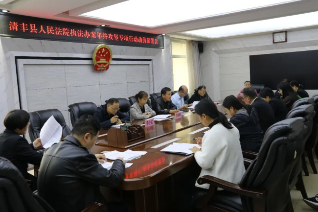 10月16日,清丰县法院召开执法办案年终攻坚专项行动动员部署会,全面吹响年终审执工作冲刺号角。会议由党组成员、副院长王瑞启主持,班子成员、院长助理及各部门负责人参加。