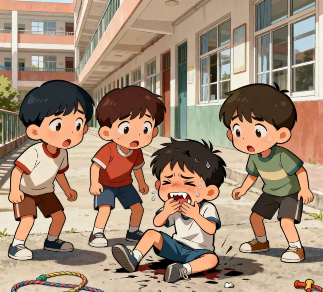 去年五月份某一天的课间,四年级学生孟某和金某、魏某、赵某在教学楼走廊玩“翻转游戏”——金某、魏某双手牵手,孟某后仰躺在金某、魏某手臂上,随即金某、魏某二人手臂向前抛起,孟某向前倾倒摔倒在地,面部朝下砸在地上,门牙当场出血。老师赶紧联系家长送医,可检查结果让孟某家出乎意料:两颗恒牙牙根断裂,只能等18岁成年后再行种植修复。后孟某与其余游戏参与者及保险公司就赔偿费用未达成一致意见,诉至法院。