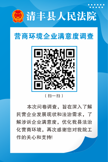 为了让司法服务更贴合企业发展需求,破解经营中的法治堵点、痛点,清丰县法院营商环境企业满意度调查问卷现已上线~