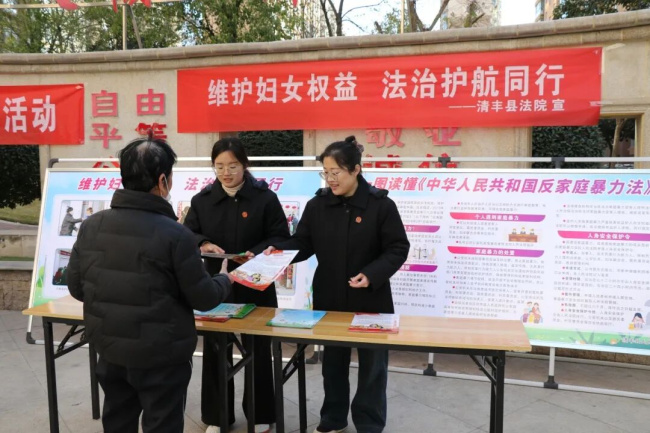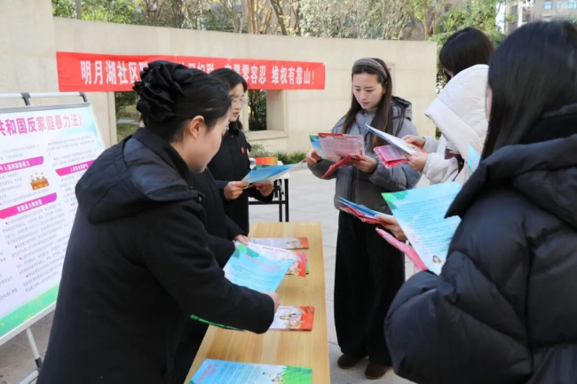 11月25日是“国际消除对妇女暴力日”,为进一步从源头预防和制止家庭暴力,提升社区居民的法治意识和维权能力,清丰县法院干警走进明月湖社区公园里小区,开展反家庭暴力普法宣传活动。