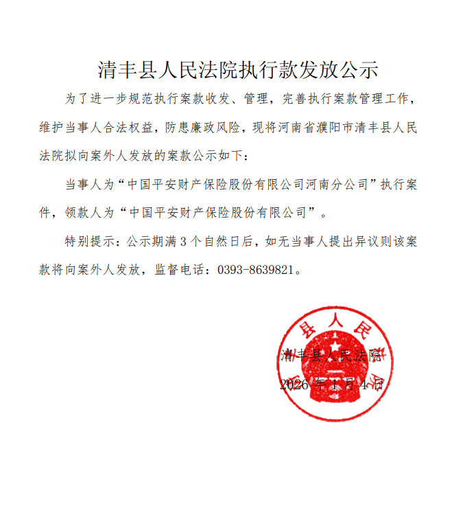 清丰县人民法院执行款发放公示