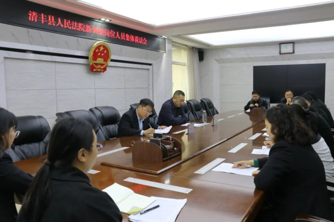 4月9日,清丰县法院召开新调整岗位人员集体谈话会。岗位调整人员参加会议,会议由党组成员、政治部主任李国波主持,党组书记、院长赵永正出席会议。